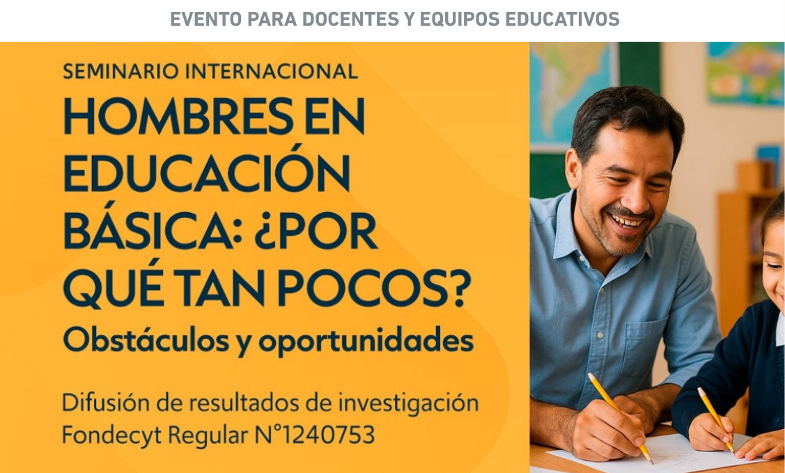 La Escuela de Educación de la Universidad de los Andes tiene el agrado de invitarles al Seminario Internacional “Hombres en Educación Básica: ¿Por qué tan pocos? Obstáculos y oportunidades”, en el que se presentarán los resultados de la investigación Fondecyt Regular, liderada por la doctora Marianela Navarro.